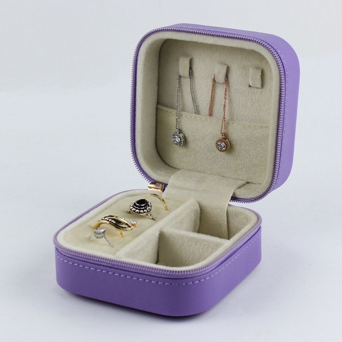 Deri Seyahat Takı Çantası Mücevher Kutusu Lila